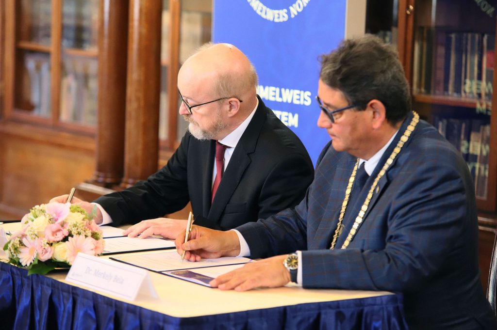 A Semmelweis Egyetem és a magyarországi kórházak, rendelőintézetek, valamint országos intézetek közötti ünnepélyes megállapodás aláírása alkalmából dr. Merkely Béla rektor hangsúlyozta, hogy az egyetem napjainkban is névadója, Semmelweis Ignác hitvallásához igazodva működik. Ennek lényege, hogy a tudományos eredményeknek minél hamarabb hasznosulniuk kell a betegágyak mellett. Ez is hozzájárult ahhoz, hogy orvos- és egészségtudományi területen ma már a világ 186. legjobbja, szakterületén az ország és a régió első számú felsőoktatási intézménye, valamint Magyarország legnagyobb betegellátója is egyben.